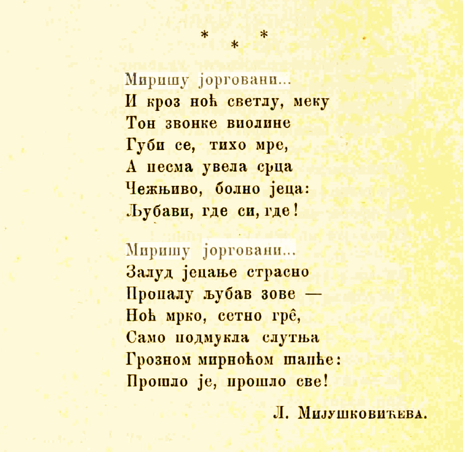 И као што су због љубави правду потражили у двобојима руски песници Пушкин и Љермонтов, тако је и јагодинска песникиња Лепосава Мијушковић желела двобој са изабраницом свог срца, Јагодинком Љубицом Ракић.