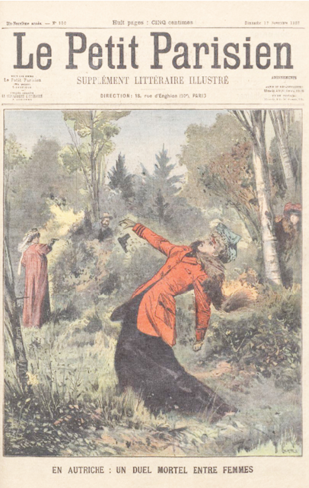 У Европи су почетком двадесетог века били чести женски двобоји. О томе су писале новине са приказима сцена двобоја. Можда због тога, а можда и због Пушкина и Љермонтова, перспективна српска књижевница Лепосава Мијушковић излаз из своје тешке друштвене ситуације, у сукобу између сопственог тела и душе, нашла је у двобоју са својом изабраницом која ју је изневерила.