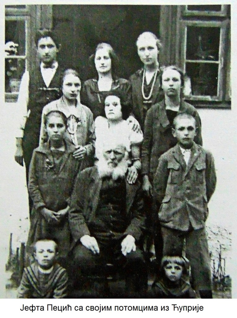 Јефта и Милица Пецић (Пећић) имали су синове Милана, Спиридона, Властимира и Владимира. Нажалост Властимир је као активни инжењеријски поручник у 28. години погинуо у ратним сукобима 1914. године на Мачковом Камену (Врапчије брдо код Крупња), тако да иза њега није остала породица, већ само име уклесано на споменик у центру Ћуприје.