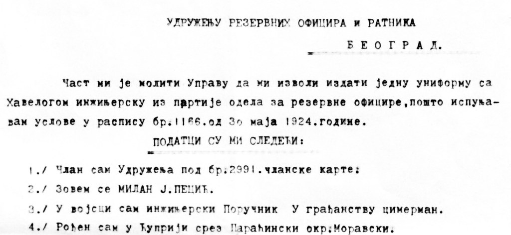 Сходно војним правилима Милан је 1925. године за 500 динара купио официрску униформу намењену војним резервистима. У свакој свечаној прилици ју је облачио. Поносно је на груди закачињао ордење и одликовања. На свадби своје кћерке Радмиле 14.05.1933. године појавио се у свечаној униформи. Био је поносан на своју кћер, јер се након дипломирања на Универзитету у Београду удала за официра краљеве гарде.