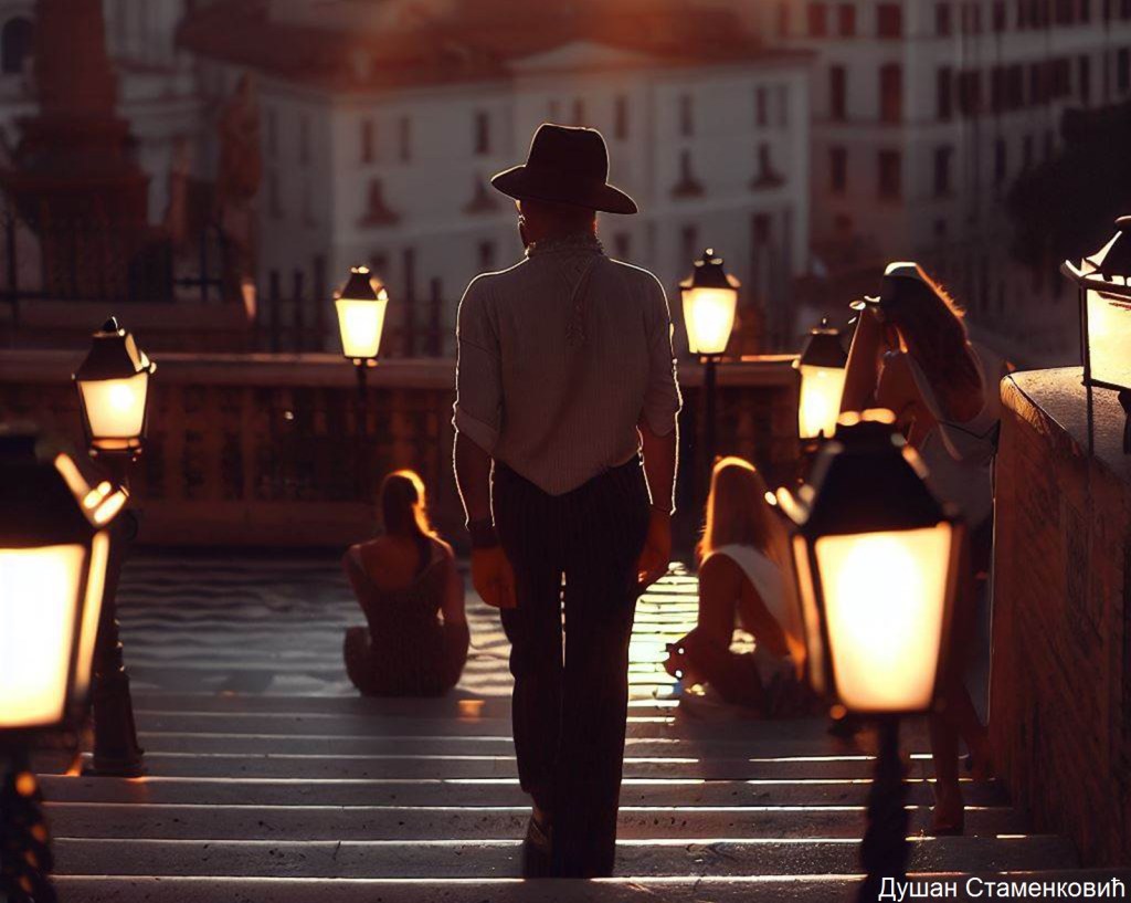 Сунце се више не види. А на небу се појављују авиони који довозе нове туристе на оближњи аеродром. Док се спуштају ка писти скоро да се не чују. Тек када почне ноћ авиони ће да узлете са грмљавином мотора.
