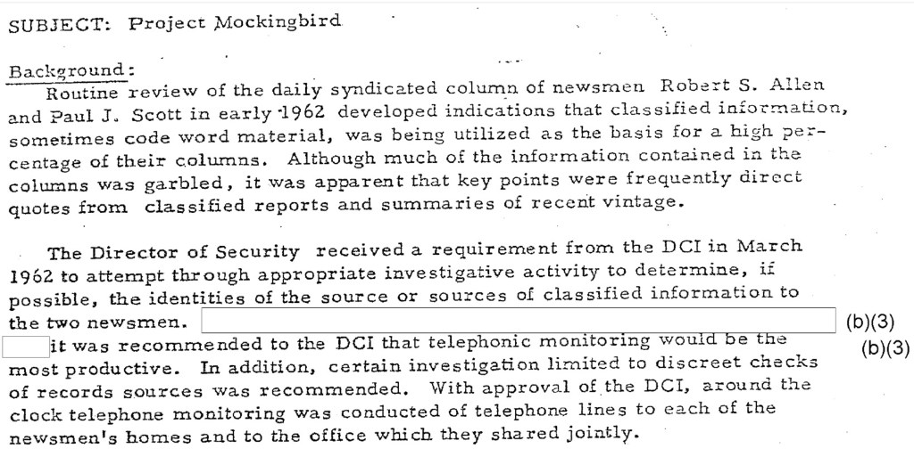 Назив „Птица ругалица“ је за неке људе само скраћеница целог једног тајанственог пројекта америчке Централне обавештајне агенције коју сви препознају само као ЦИА. Сједињене Државе су почев од средине прошлог века манипулисале великим америчким новинским агенцијама у пропагандне сврхе. Амерички водећи новинари су, наравно свако из својих ралога, прихватили да пишу наручене текстове. Требало је скоро 17 година да се открије како је ЦИА финансирала разне грађанске групе и новинаре.