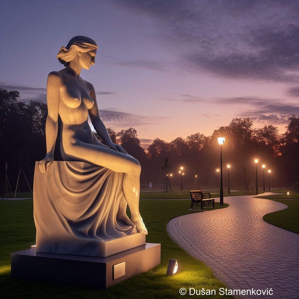 И сада бих волео да могу да прошетам поплочаном стазом у парку поред које је низ скулптура. Наравно са женским ликом, баш онако како нас је учио професор уметности у Гимназији.