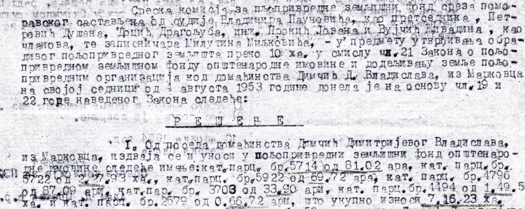 Она каснија држава је Димчић Димитрија Владиславу одузела богатство које прелазило површину од дозвољеног земљишног максимума од десет хектара.