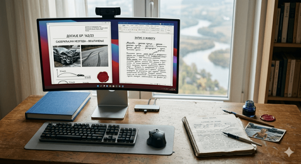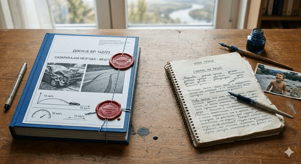 Вештачење је моја дужност према суду, али писање је моја дужност према сопственој души. Судија потврђује мој прорачун, али само ти, добронамерни читаоче, можеш потврдити моју емоцију. И док се у мени боре инжењер који анализира незгоде и писац који слави живот, схватам да су то заправо две стране исте медаље. Оба траже исто – смисао у хаосу.
