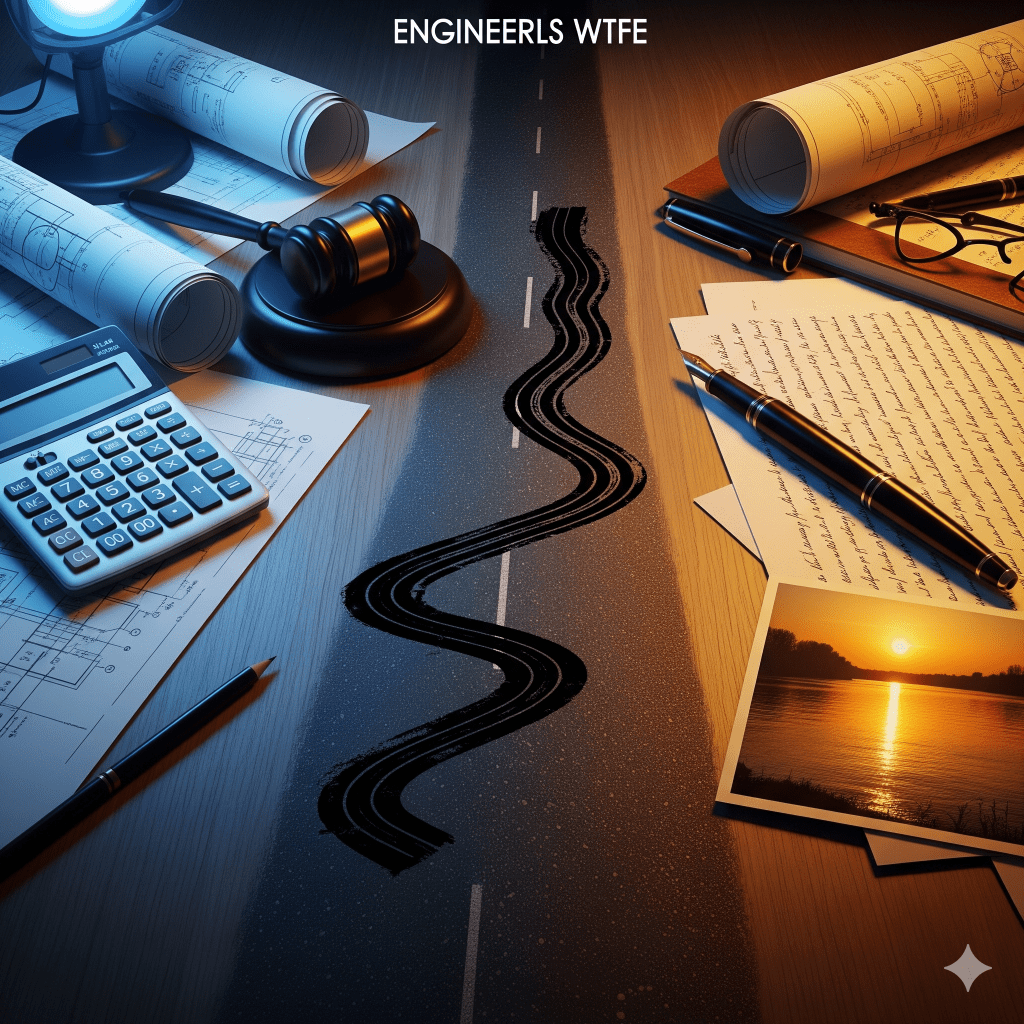 Као инжењер, ја мерим растојање између два аутомобила. Као писац, ја мерим растојање између два срца – оног које памти мирис клакера из детињства и оног које данас куца у ритму градске гужве. Највећи сукоб у мени није између закона и слободе, већ између прецизности и маште.