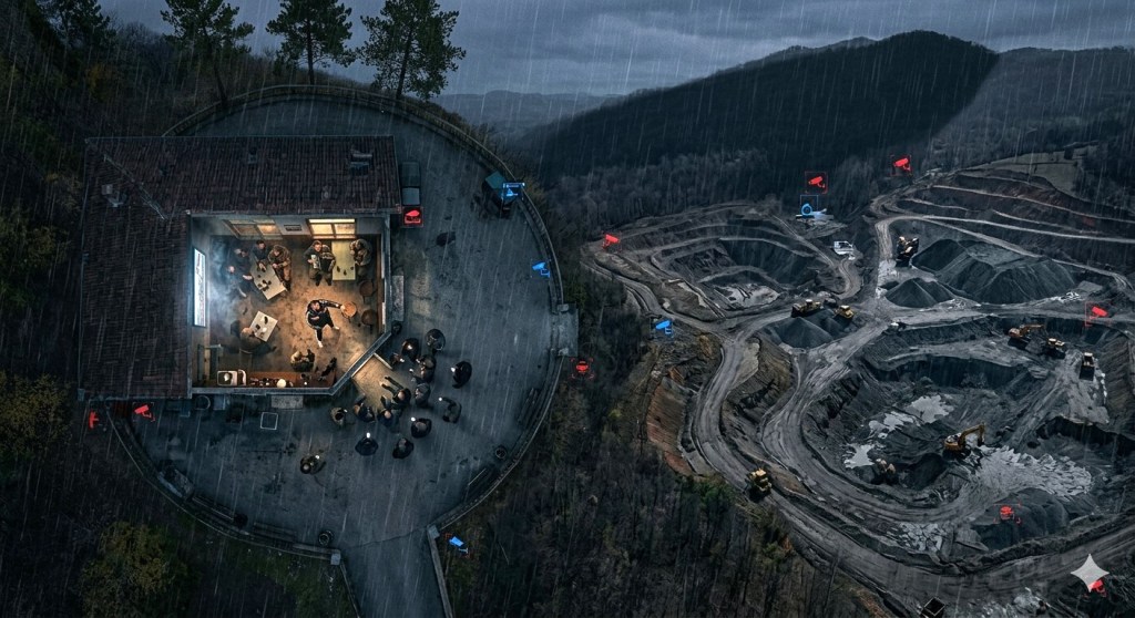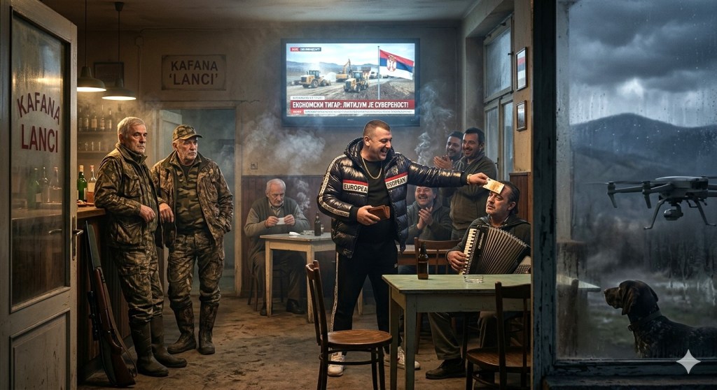 Врата се нагло отворише. Ушао је Миле, локалац из Аустрије. Сјајна јакна, кључеви „аудија“ тресну о шанк. „Живели, сиротињо!“ узвикну, вадећи буђеларку пуну евра. „Тамо сам сметлар, машина коју нико не види. Али овде сам краљ! Ракију за све! Нека копају литијум, ја пијем флаширану воду. Овде је права демократија – платиш и возиш како хоћеш!“