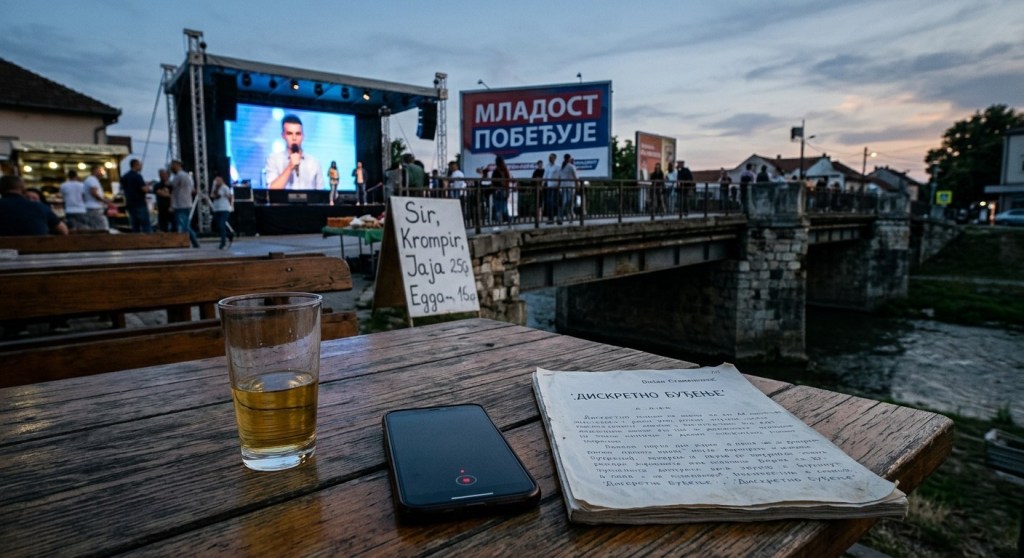 На излизаном дрвеном столу баште „Код Моравца”, одмах поред полупразне чаше домаће ракије, лежао је модеран паметни телефон. Његов екран је био затамњен, али је у самом углу сићушна црвена тачка пулсирала у ритму људског дисања. Диктафон је бележио све – и шкрипу шљунка под ногама пролазника, и удаљени хук Мораве, и опори глас човека који је некада знао све градске тајне.